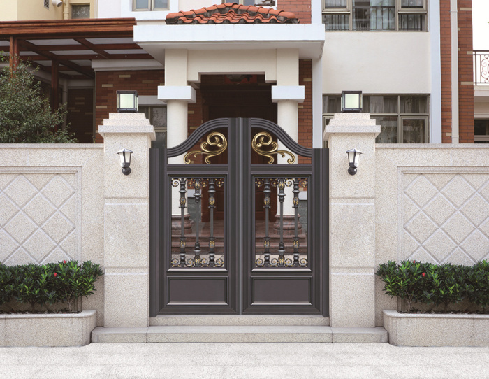 铝艺大门是一个超豪华的入口。华丽的金色是华丽的,沉稳厚重,给人一种庄严神圣的感觉。这是用来作为在深豪宅的地方,既是身份的象征和强大的屏障,是保护门内的和平。注意这些铝艺大门的自定义安装。铝艺大门定制安装需要注意的问题1.首先,删除门扇,把门